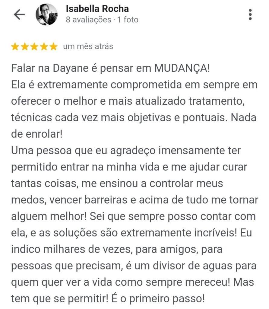 Dayane é psicóloga, hipnoterapeuta, mentora e professora, especialista em performance emocional e evolução mental, criadora da programa de Memoranálise®, é amante de esportes e acredita que transformar a vida das pessoas é a melhor forma de mudar o mundo.